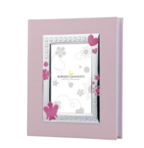 Album in Similpelle Rosa con cornice con Angeli e Cuori in Argento