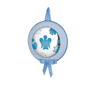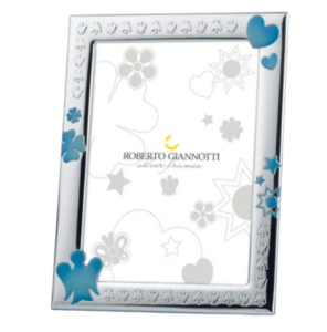 Cornice in Argento con Angelo, Quadrifoglio, Cuore, Stella e Sole in Azzurro