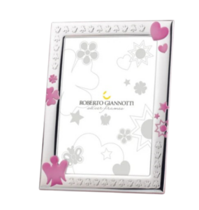Cornice in Argento con Angelo, Quadrifoglio, Cuore, Stella e Sole in Rosa
