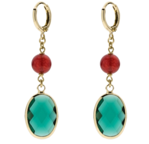 Orecchini lunghi con pietra verde smeraldo e perla rossa Jaipur