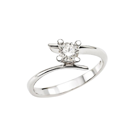 Anello Solitario contrariè in Oro 18kt bianco rodiato con Diamante avvolto da quattro griffe. Disponibile in diversi ct e in diverse misure.