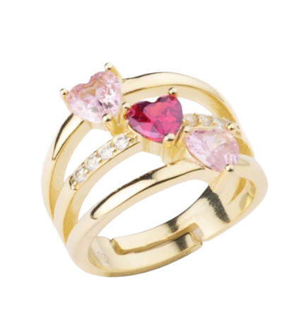 Anello in argento trilogy con cristalli dal taglio a cuore e zirconi clear