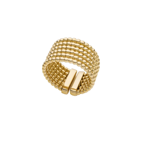 Anello a fascia con sei fili di catena a palline. Il design avvolgente di questo anello attesta il talento creativo e lo spirito innovativo ed irriverente che anima i gioielli UNOAERRE. Una creazione unica che rinnova i canoni della gioielleria tradizionale ed il fascino dell’iconico anello a fascia ricoprendolo di piccole sfere scintillanti. MUST HAVE.