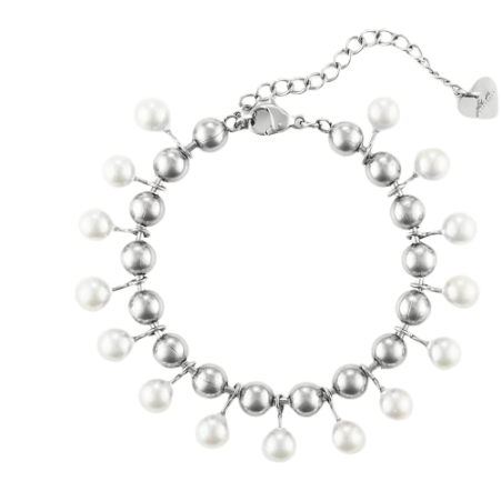 Bracciale con perline e perle da donna in acciaio di 4US Cesare Paciotti. Il gioiello presenta un tipo di chiusura a moschettone. La lunghezza è dieza 15cm+5cm. La referenza è: 4UBR6477W