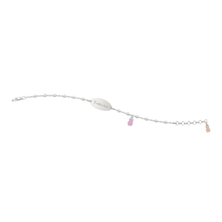 Il raffinato bracciale in puro argento della linea Nanàn Bijou è rifinito nei dettagli, con una targhetta in cui inserire il tuo nome o quello del tuo bimbo. Due orsetti sono appesi al braccialetto. Dono prezioso, ricordo per la vita. N.B. Al momento dell’acquisto inserisci il nome nelle note. Per la personalizzazione sono previsti minimo 7 giorni di attesa.