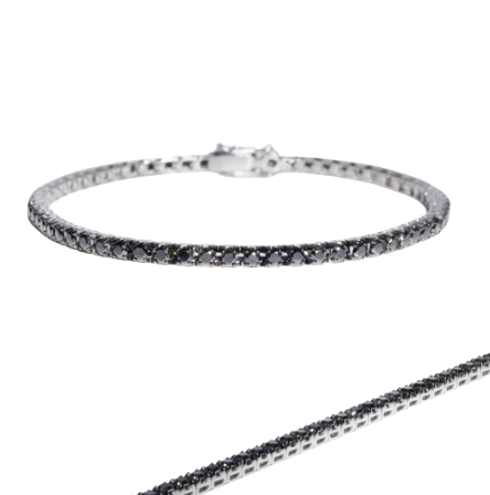 Bracciale tennis da donna Promesse Gioielli in oro bianco 18kt (750/00). Bracciale con diamanti neri naturali. La caratura totale dei diamanti è di 1,08 ct, colore F/G. La chiusura del braccialetto è una scatola con sicurezza. La lunghezza del bracciale è di 19 cm. La larghezza del braccialetto è di 0,30 cm. Riferimento: SFINGBL2