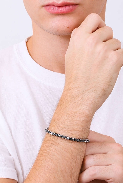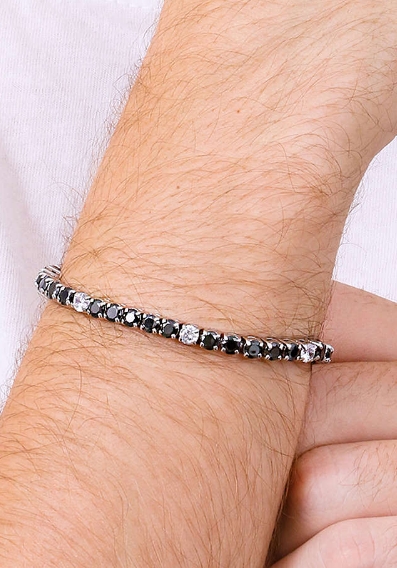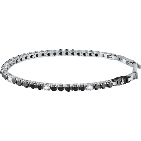 Bracciale da uomo di maserati. Gioiello realizzato in acciaio con zirconi di colore nero e bianco. Lunghezza: 22 cm. La referenza è jm222avc05