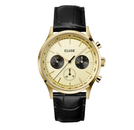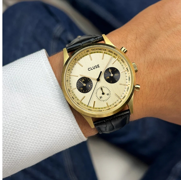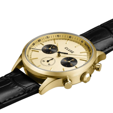 Scopri la nostra nuova collezione di orologi da uomo: un’espressione di stile, qualità e valore. Il design elegante e la struttura robusta si traducono in un connubio perfetto di ricercatezza e modernità. La cassa da 42 mm in acciaio inossidabile color oro spazzolato e il quadrante tondo color oro rendono l’orologio multifunzione Anthéor il protagonista assoluto del tuo polso. I tre quadranti secondari che indicano giorno della settimana, orario in formato 24 ore e data aggiungono un tocco sportivo. Il cinturino in pelle nera largo 22 mm si abbina perfettamente alla cassa, creando un design armonioso ed elegante che sposa facilmente a qualsiasi outfit.