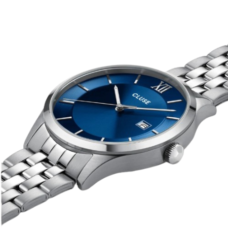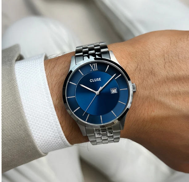 L’acciaio inossidabile e il minimalismo elegante sono al centro della nostra collezione Aravis da uomo. Questo orologio a 3 lancette, con quadrante rotondo, presenta una funzionalità di data, posizionata sul lato destro del quadrante, e una combinazione di colori blu e argento a contrasto che crea un’estetica classica ma giocosa. Impermeabilità: 5 ATM. Come per tutti gli orologi della collezione Aravis, i cinturini possono essere sostituiti con qualsiasi cinturino per orologio CLUSE da 20 mm.