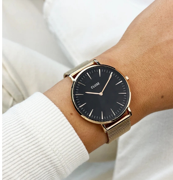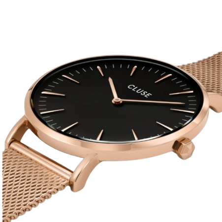 Eleganza oro rosa. Romantico jet black. Un luccichio di champagne e la promessa della mezzanotte. Raffinatezza chic con uno sguardo sfacciato. Presentato in una custodia in similpelle grigia. Come per tutti i nostri orologi della collezione Boho Chic, puoi personalizzare facilmente questo orologio con il cinturino CLUSE da 18 mm.