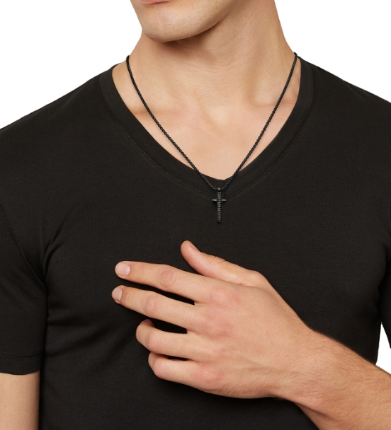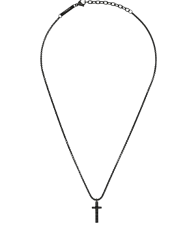 La collana Light Row è composta da una sottile catena in acciaio color nero abbinata a un pendente a forma di croce arricchito da cristalli neri cubic zirconia. La chiusura regolabile permette di modificare facilmente la misura della collana.