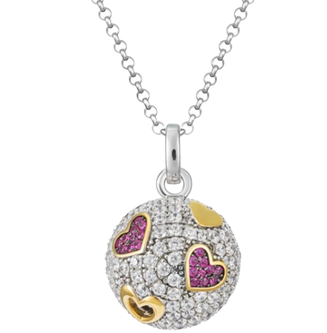 Collana Chiama Angeli in Argento con Cuori e Zirconi Bianchi e Rossi.