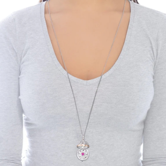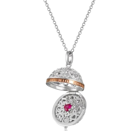 La collana pendente Chiama Angeli “con tutto il mio cuore” è un esempio di arte orafa italiana, realizzata completamente in argento risalta per la particolare lavorazione a scrigno che la rende superba.