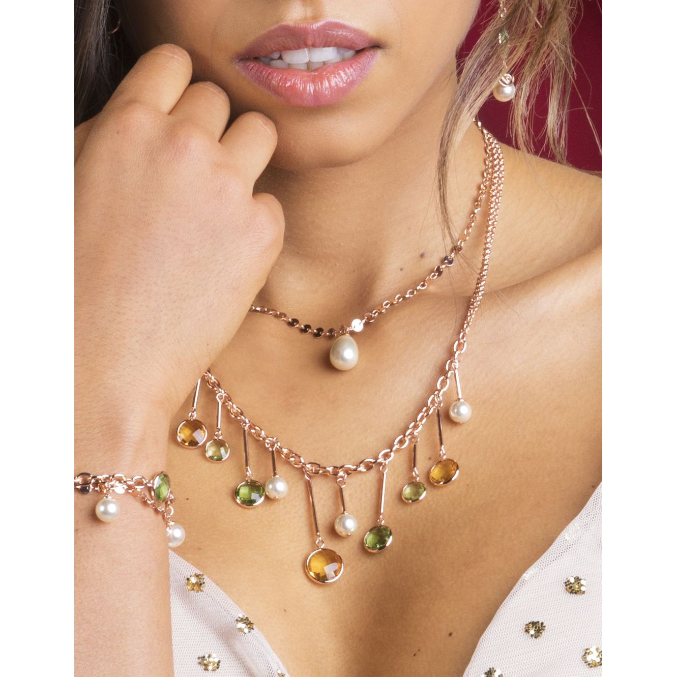 Collana da donna Barbieri Gioielli della collezione Perlissima. Collana in metallo placcato oro con pietre cristallo colorate e perle di 8 mm. La lunghezza della collana è regolabile 45 + 5 cm. La chiusura della collana è con moschettone. Referenza: CO36479-VE27
