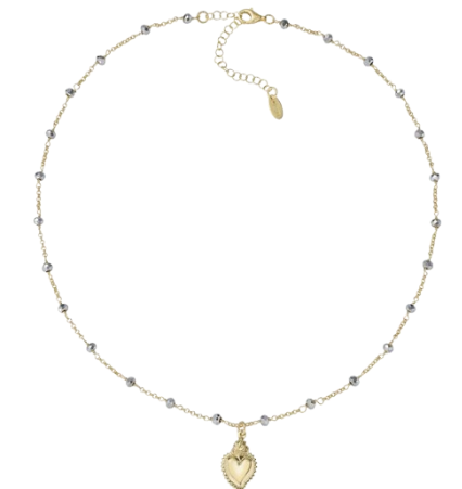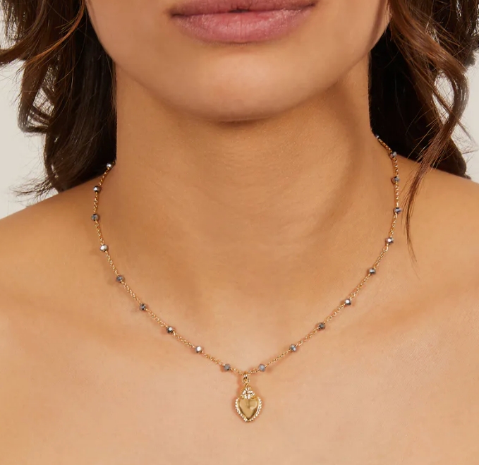 Collana Dorata Sacro Cuore con Cristalli Grigi / CLSCGGG