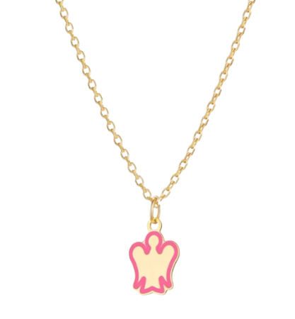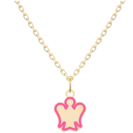 Collana oro bambina con angelo rosa.