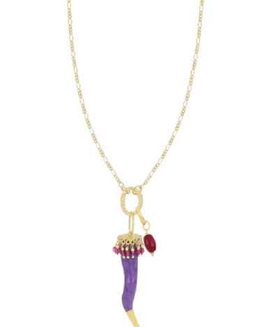 COLLANA PORTAFORTUNA CORNO VIOLA,