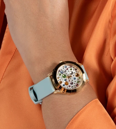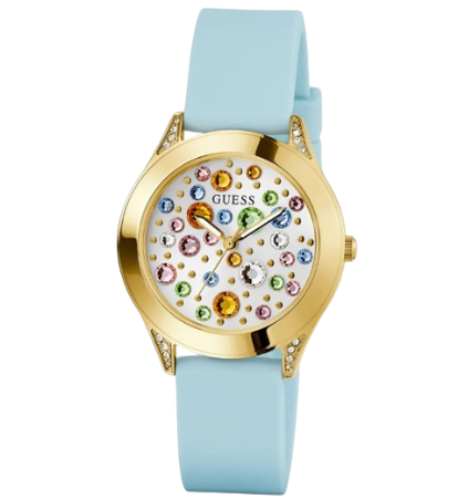 GUESS Ladies Blue Gold Tone Analog Watch