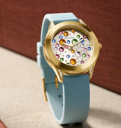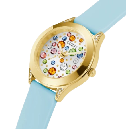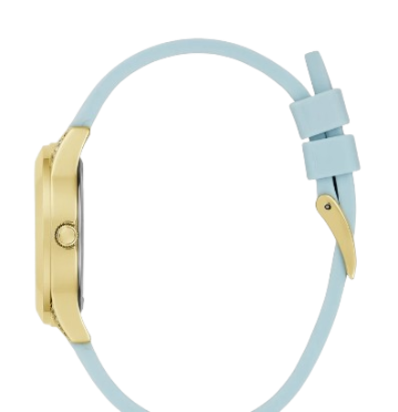 / GUESS Ladies Blue Gold Tone Analog Watch