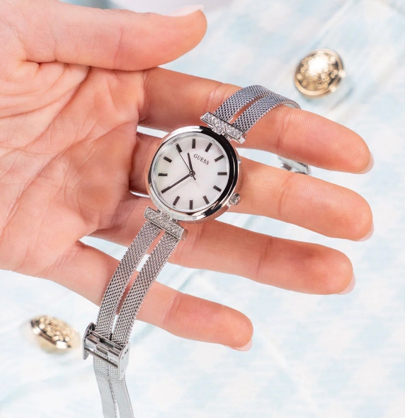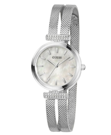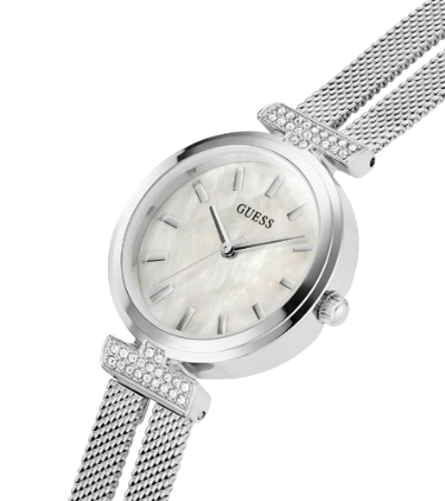Subtle and chic, our Silver Array Crystal Mesh Watch will become your new go-to accessory this season. Designed with a silver stainless steel material, this watch features a silver dial, crystal embellishments, analog watch face, and mesh bracelet.