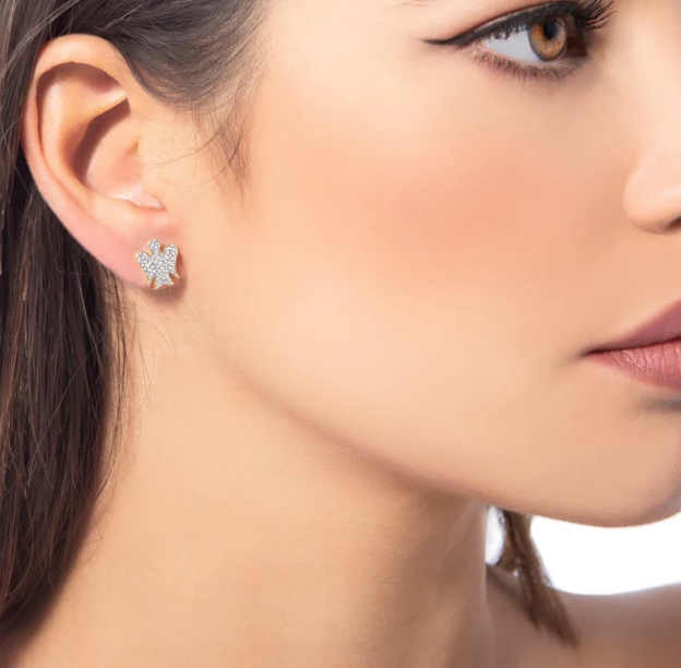 Orecchini Angeli in argento bianco e giallo e zirconi bianchi.
