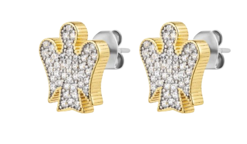 Questi orecchini racchiudono un forte simbolismo legato agli Angeli, che rappresentano da sempre amore e protezione. Perfetti da regalare a donne di ogni età e che amano essere eleganti con un tocco di originalità. Con la celestiale sagoma degli Angeli in argento bianco, bordo in argento giallo deliziosamente rifinito e zirconi bianchi, si fanno notare per l’originale abbinamento di colori e materiali che salta subito all’occhio.