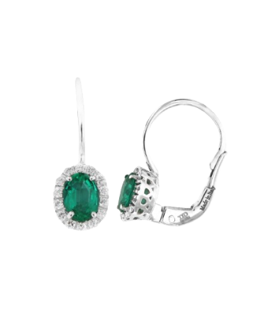 Orecchini Davite & Delucchi Donna – Pendenti in Oro Bianco 18Kt con Diamanti Naturali e Smeraldi 0,80 ct