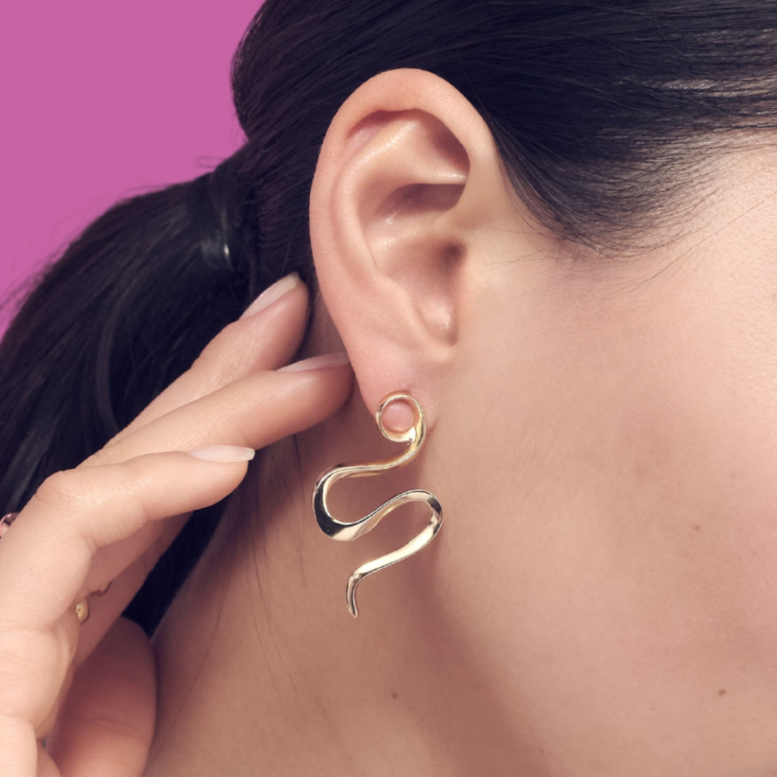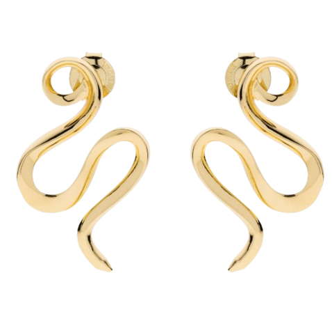 Illumina il tuo viso con l’accattivante eleganza di questi orecchini. La linea sinuosa che ricorda un serpente ti regalerà subito un tocco intrigante mentre la lucentezza del bagno in oro conferirà luce sofisticata al tuo look. Indossali da soli o in abbinamento alla collana con ciondolo coordinato per catturare ogni sguardo.