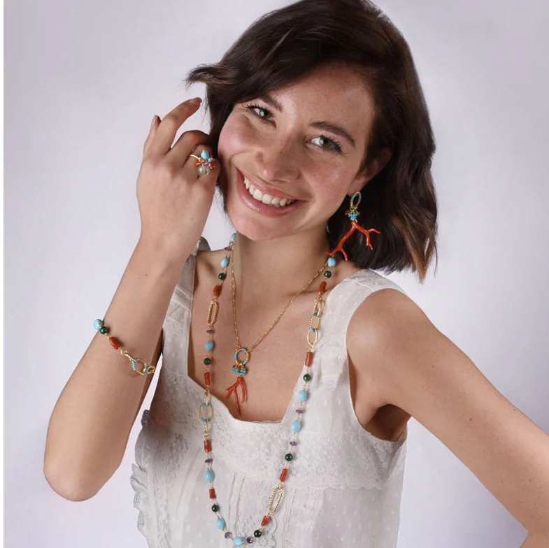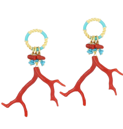 Gli orecchini estivi Tracy sono realizzati in argento 925 con corallo, turchese e smalto.