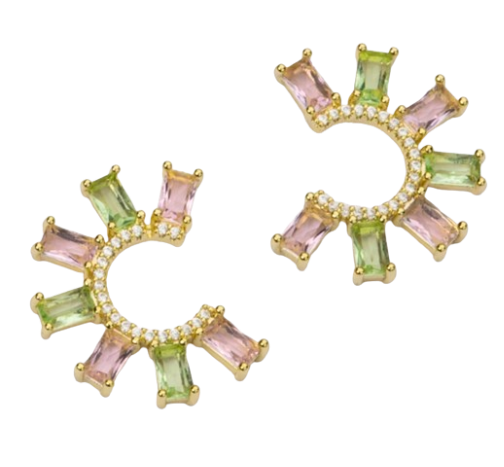 Orecchini a mezzotondo in cristalli dal taglio baguette light rose e peridot con