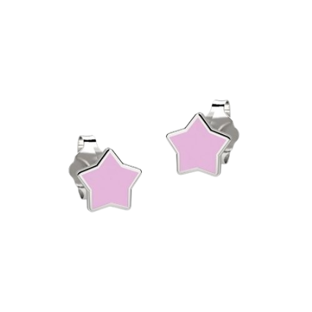 Paio di orecchini a forma di stella, dal colore lilac rosé, con una bordatura in argento.