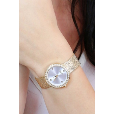 Orologio da donna Liu Jo della collezione Lightness. Il movimento dell’orologio è al quarzo con batteria. La cassa del diametro di 29 mm è realizzata in acciaio di colore oro. Il bracciale è realizzato in acciaio di colore oro. Il quadrante è di colore argento. La resistenza all’acqua è di 3 atm / 30 metri. Referenza: TLJ2140