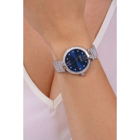 Orologio solo tempo da donna di Liu Jo della collezione Divine. La cassa è di diametro 34 mm, di colore blu ed è realizzata in acciaio. Il cinturino è di colore argento ed è realizzato in acciaio. L’impermeabilità è di 5atm ed il movimento è miyota cal.2035. La referenza è TLJ2046.