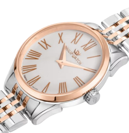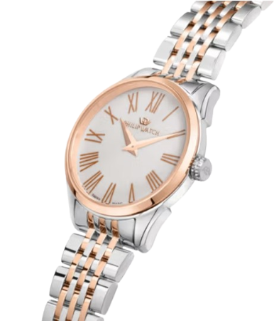OROLOGIO PHILIP WATCH ROMA – R8253217507 – Philip Watch experience: Classic, Genere : Donna, Materiale e finitura cassa: Acciaio, Misura cassa: 28mm, Spessore cassa: 7,30, Finitura cassa: Lucido, Colore cassa: Rose-gold, Vetro: Vetro zaffiro, Materiale cinturino: Bracciale in metallo, Colore cinturino: Silver, Rose Gold, Chiusura: Fibbia farfalla con pulsanti, Swiss made: Sì, Water resistant: 5 atm, Garanzia: Ufficiale 2 anni Philip Watch, Confezione: Originale Philip Watch