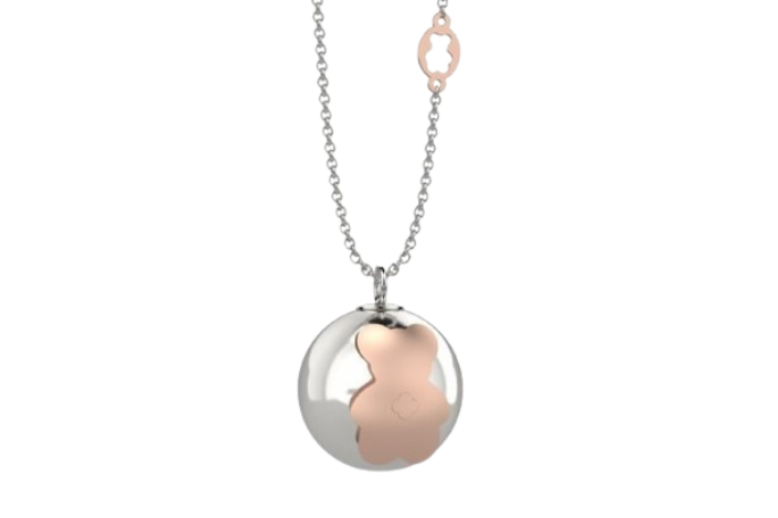 Pendente con ciondolo a boule, con orsetto placcato in oro rosa.